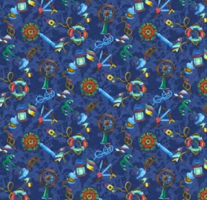 Детская ткань на выбор в соответствии с картинкой карточки - Т 27 якоря на синем.