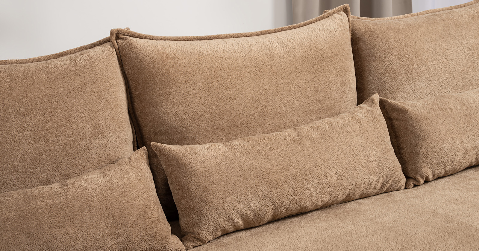 Изогнутые подлокотники в форме лепестков придают коллекции изысканный и элегантный вид, а дополнительные декоративные подушки обеспечат поддержку тела и помогут уютно устроиться на диване. В наполнении дивана используется высокоэластичная пена, которая адаптируется к форме вашего тела и гаранитует максимальный комфорт во время отдыха.
