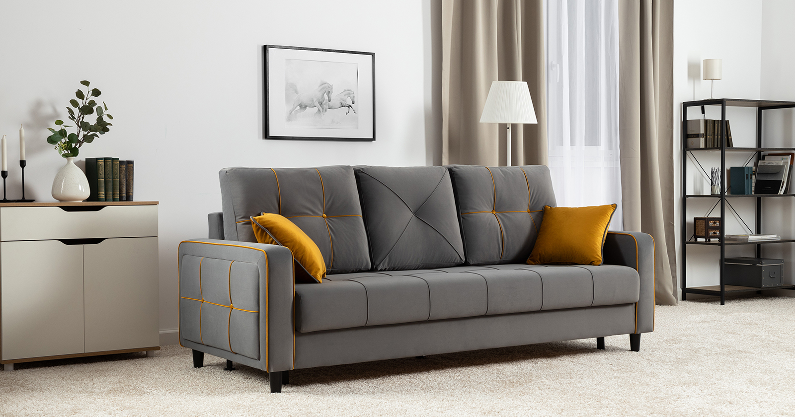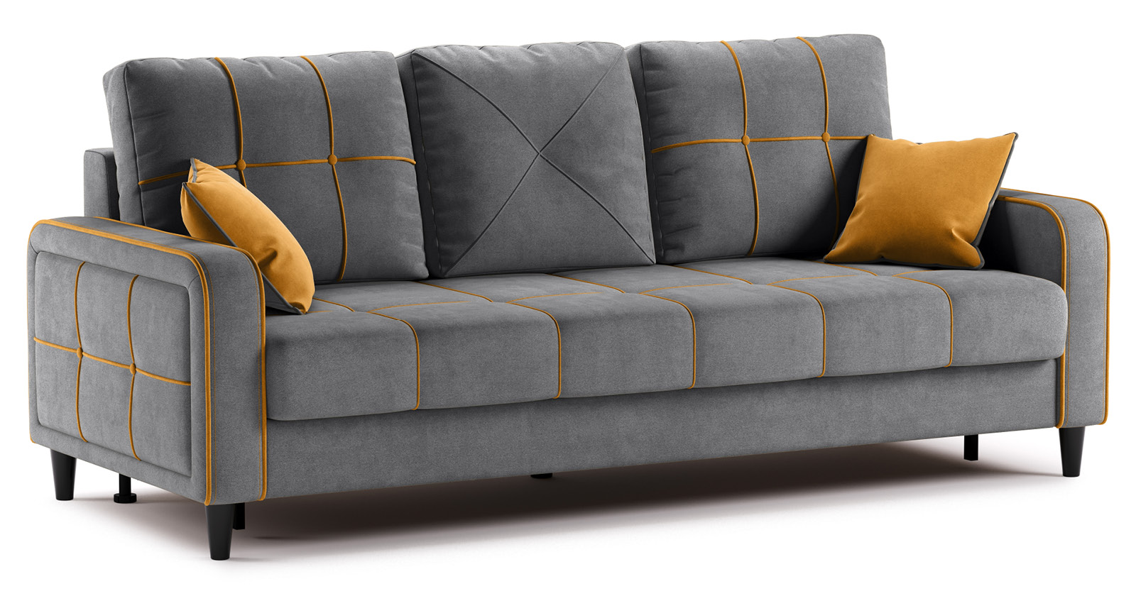 Диван-кровать прямой Черри ТД 287 велюр Irida 21 серый, Эвита умбер горчичный