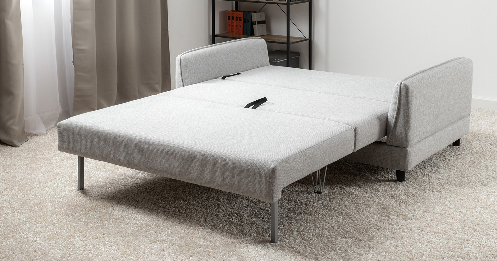 Лаконичный дизайн с деревянными ножками и узкими подлокотниками удачно дополнит не только интерьер гостиной, но и кабинета, и кухни. Кроме того, диван Макс позволяет организовать спальное место в ограниченном пространстве.