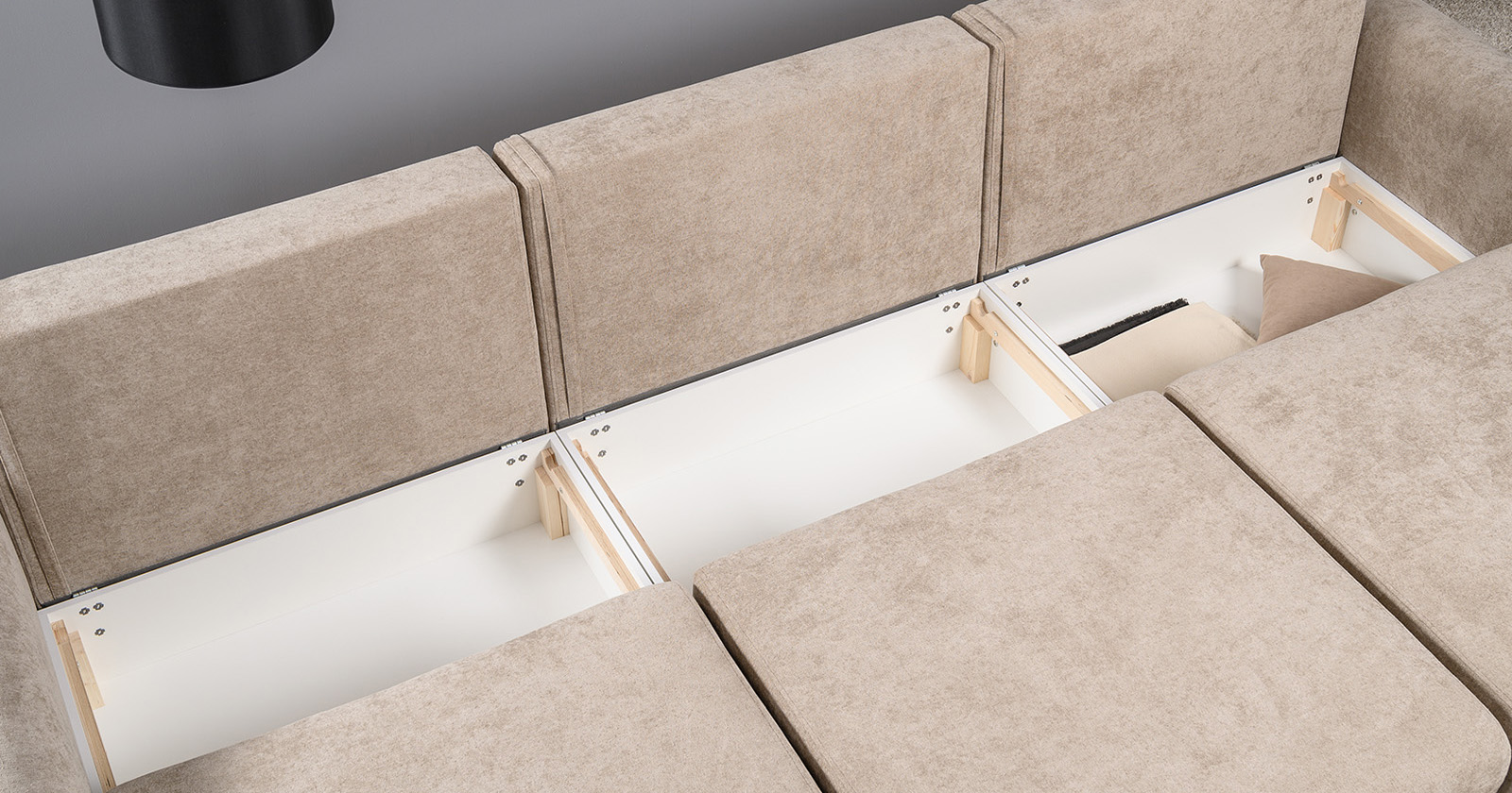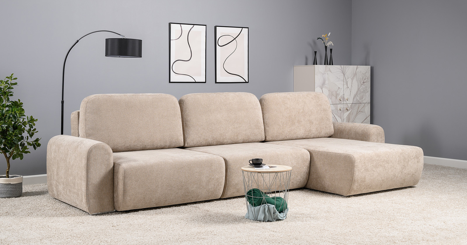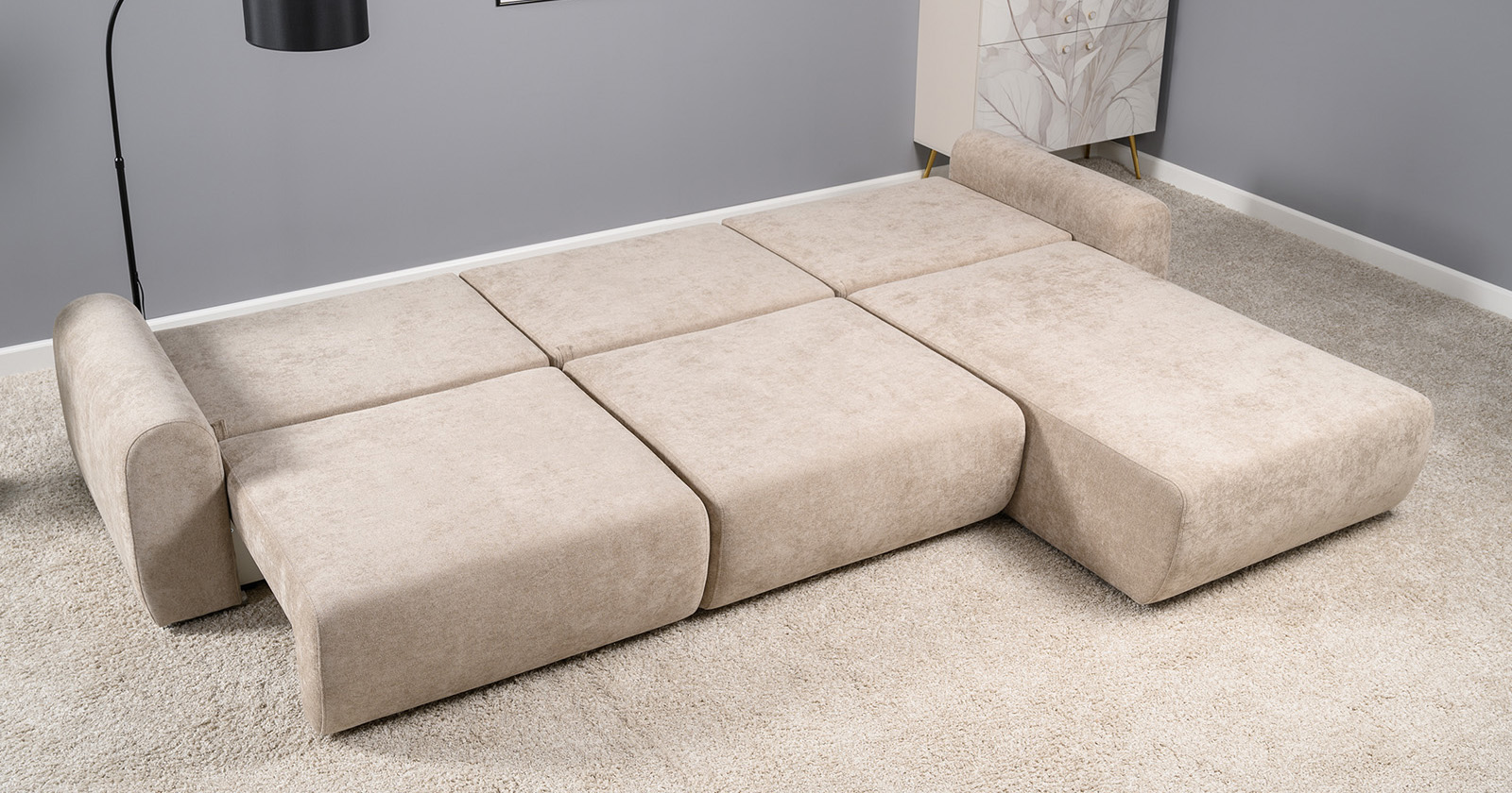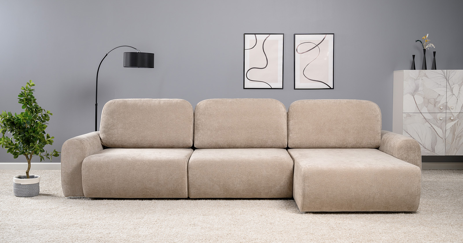 Диван-кровать угловой Тэдди 1502 композиция 2, букле Pique 006 бежевый, модульная система, сборка на любую сторону