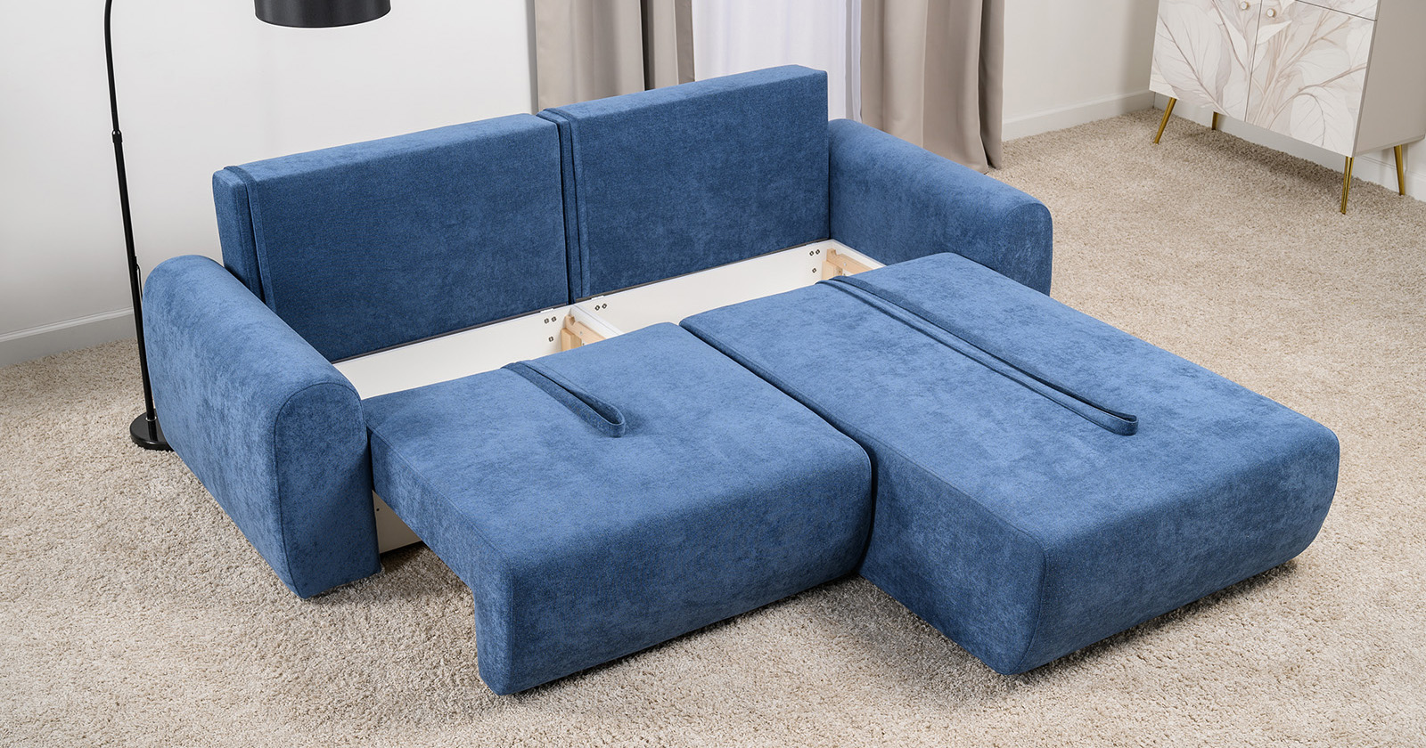 Диван-кровать угловой Тэдди 1504 композиция 3, букле Pique 009 синий, модульная система, сборка на любую сторону
