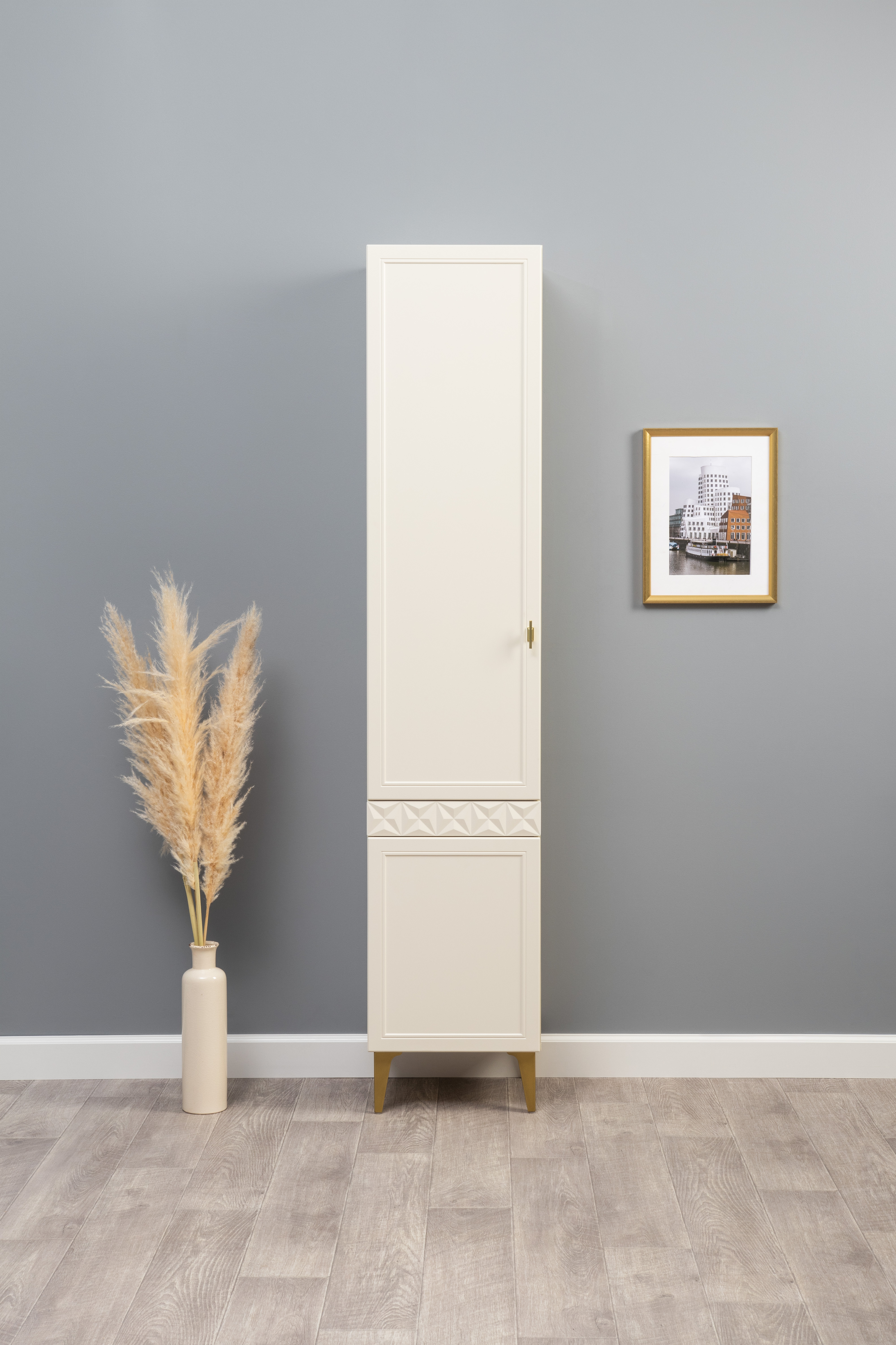 Шкаф навесной Марион 16.334 слоновая кость С341 PE, слоновая кость 6898 ПВХ (собирается на любую сторону)