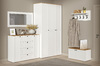 Вместительная шкафная группа позволит оптимально организовать хранение, а продуманные габариты тумбы, комода и зеркала дают возможность собрать различные компоновки.