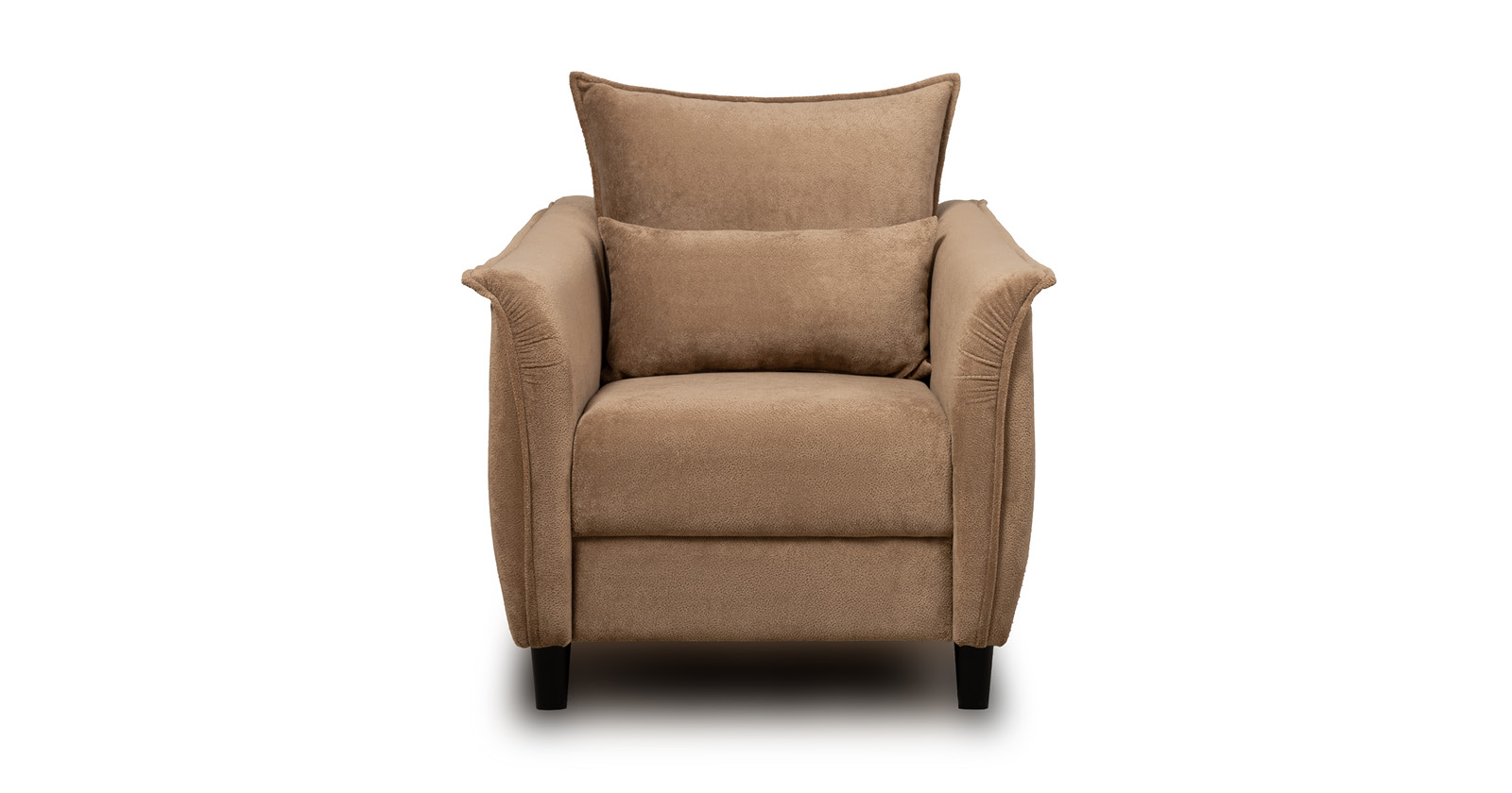 Изогнутые подлокотники в форме лепестков придают коллекции изысканный и элегантный вид, а дополнительные декоративные подушки обеспечат поддержку поясницы и помогут уютно устроиться на кресле.