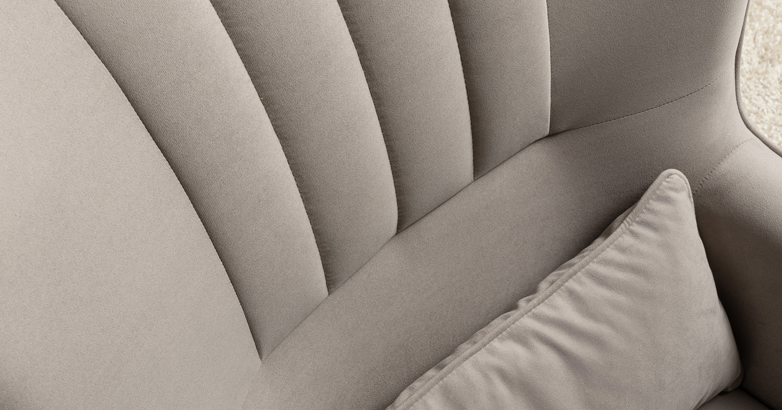 Вертикальная объемная стежка в средней части спинки; кант на спинке, подлокотниках и декоративной подушке