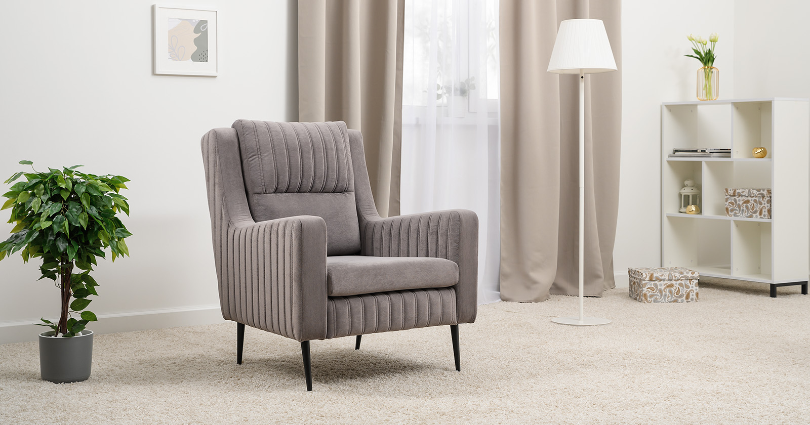 Кресло для отдыха Изабель ТК 737 велюр Романс вижион серо-бежевый