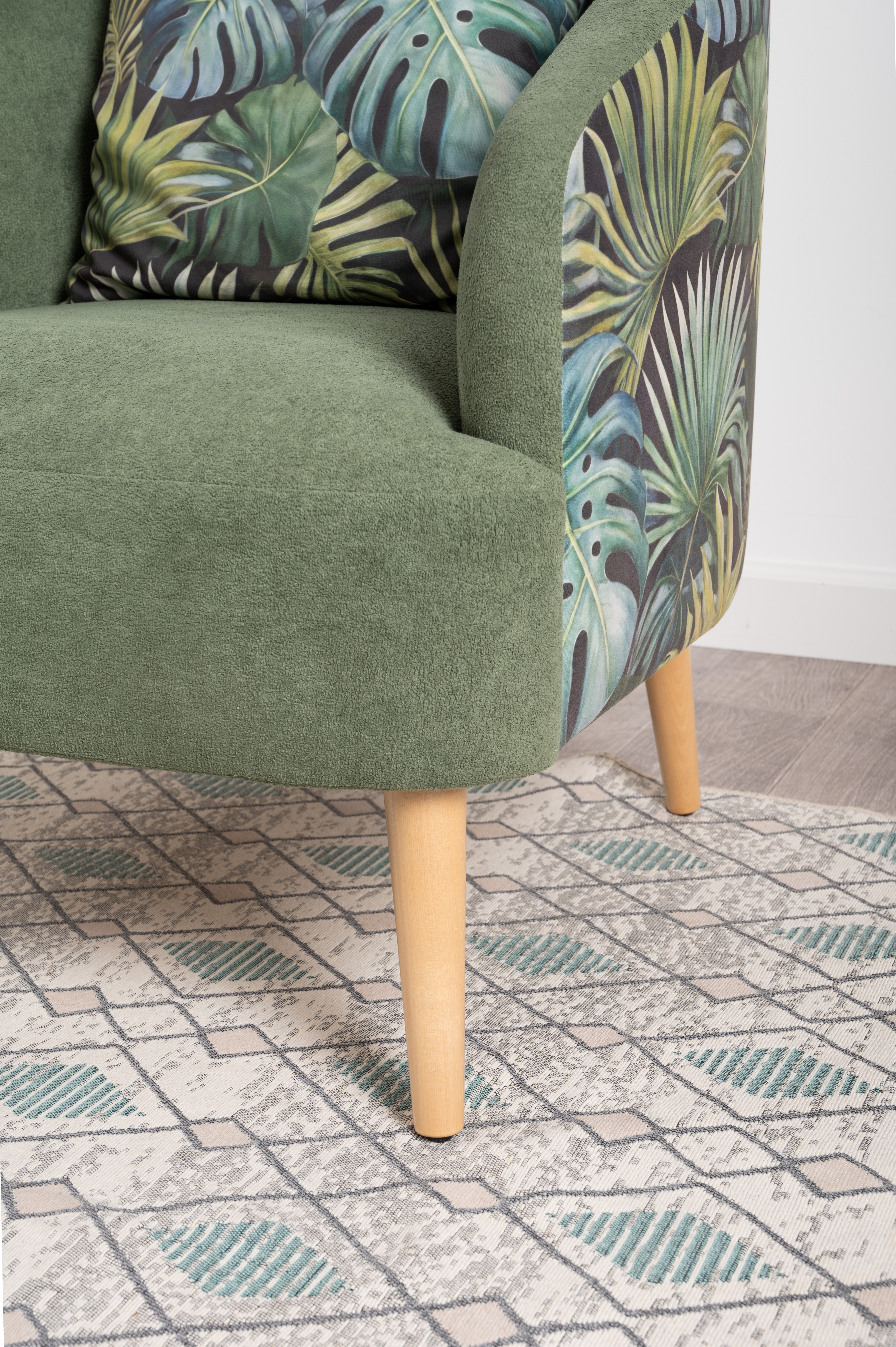 Маттиас — оригинальное кресло готовое стать акцентом в интерьере. Яркий тропический принт «монстера» на спинке мгновенно сделает комнату живой и современной.