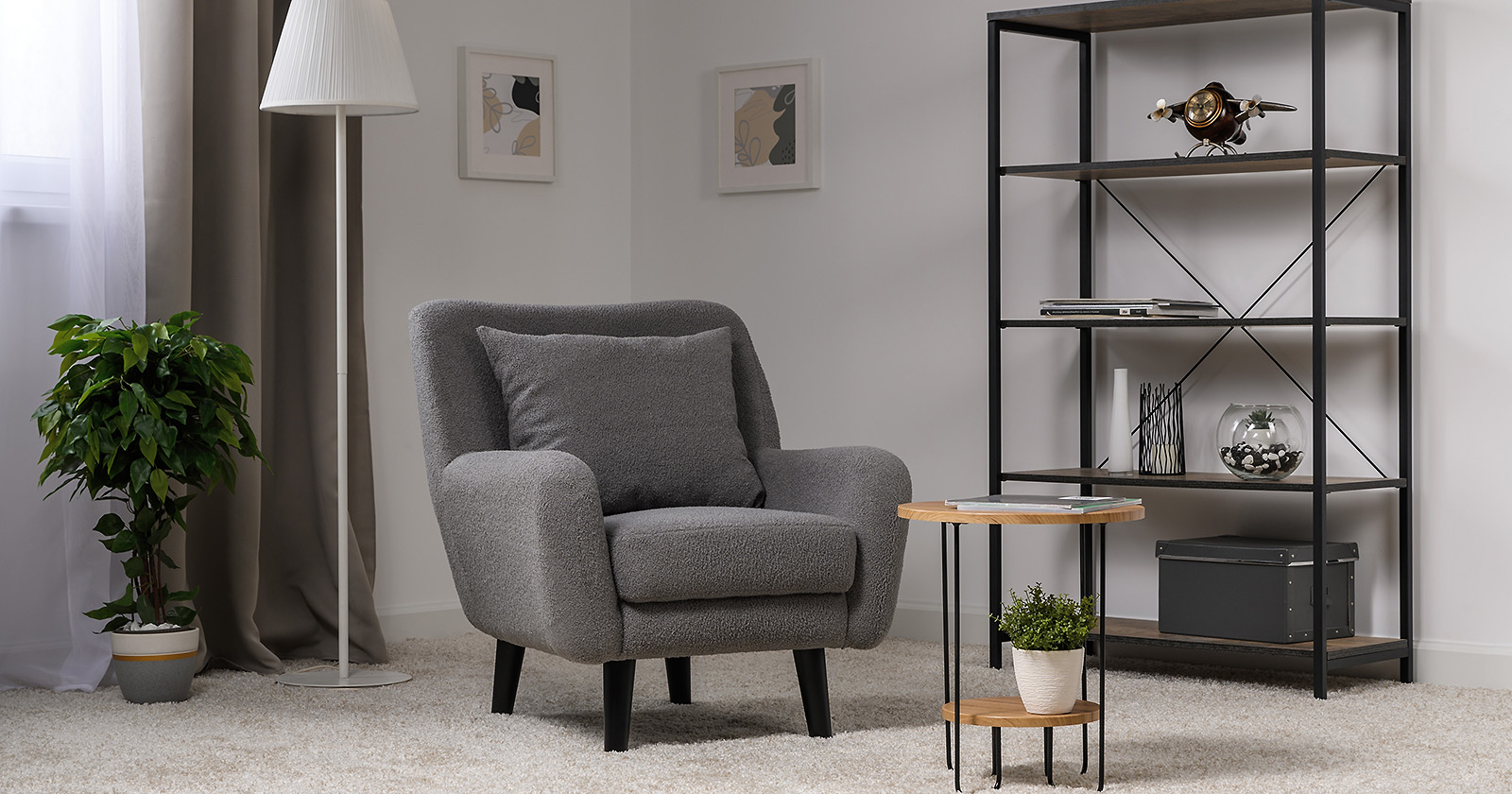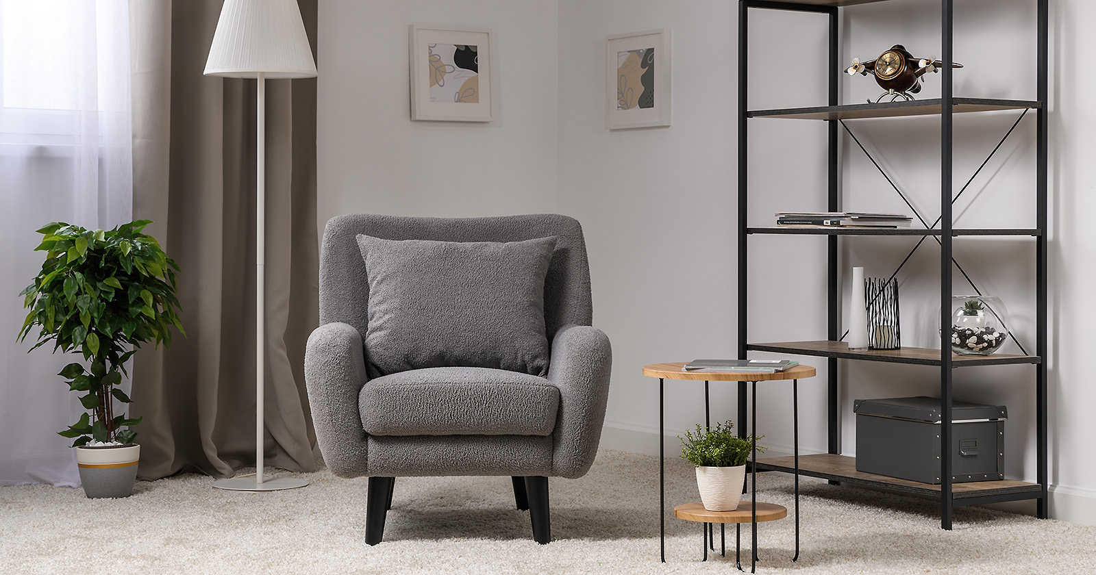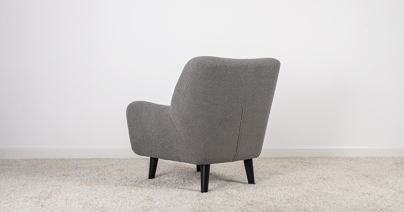 Ткань букле делает кресло особенно уютным и мягким. Приспинная подушка в цвете кресла