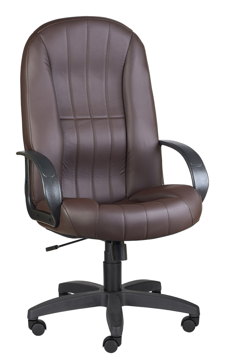 Кресло на колесах Гармония ультра кожзам коричневый, крестовина пластик, подлокотники пластик, механизм качания