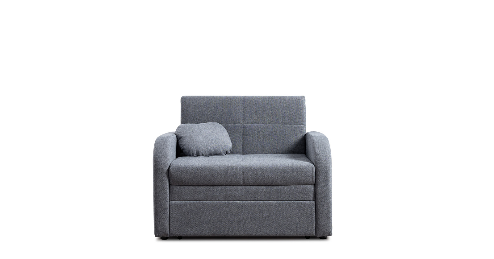 Коллекция выполнена в современном минималистичном стиле с мягкой обивкой из износостойкой ткани и декоративной стежкой, подчеркивающей геометрию форм. Механизм трансформации обеспечивает дополнительное спальное место, делая мебель не только эстетичной, но и максимально функциональной для небольших пространств.