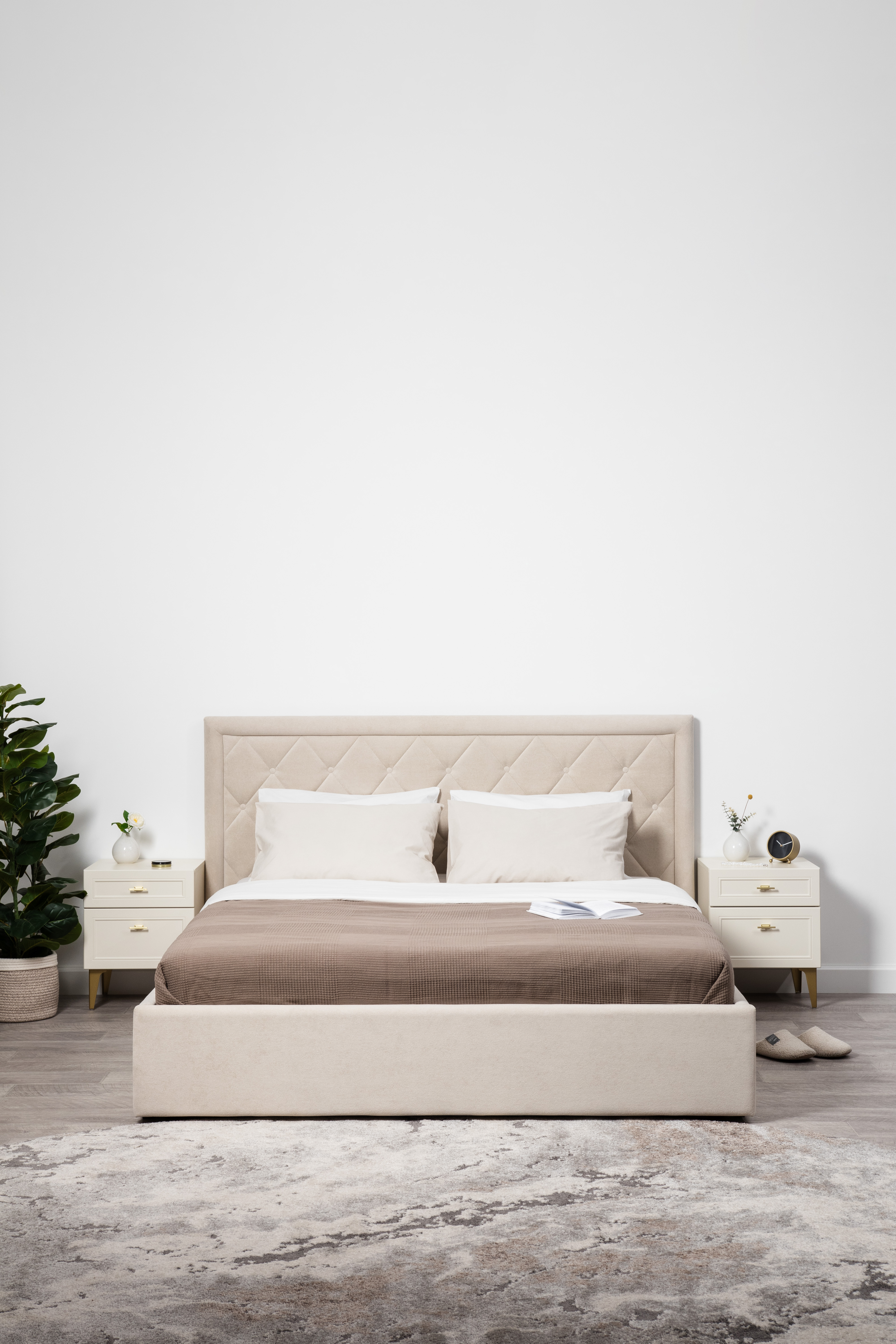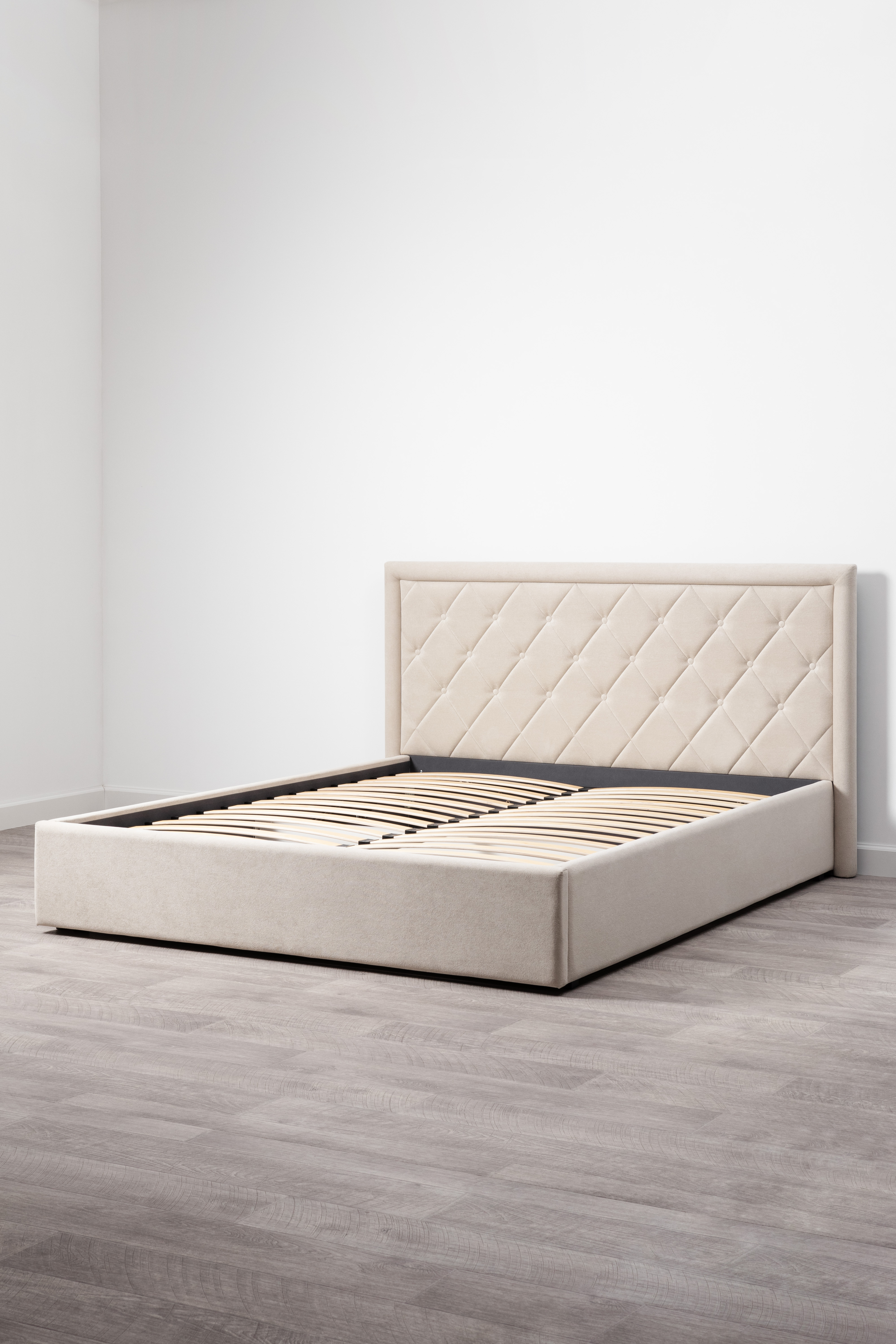 Кровать Марион 160 велюр OCEAN 002 бежевый с ортопедическим основанием и подъемным механизмом (спальное место 160 х 200)