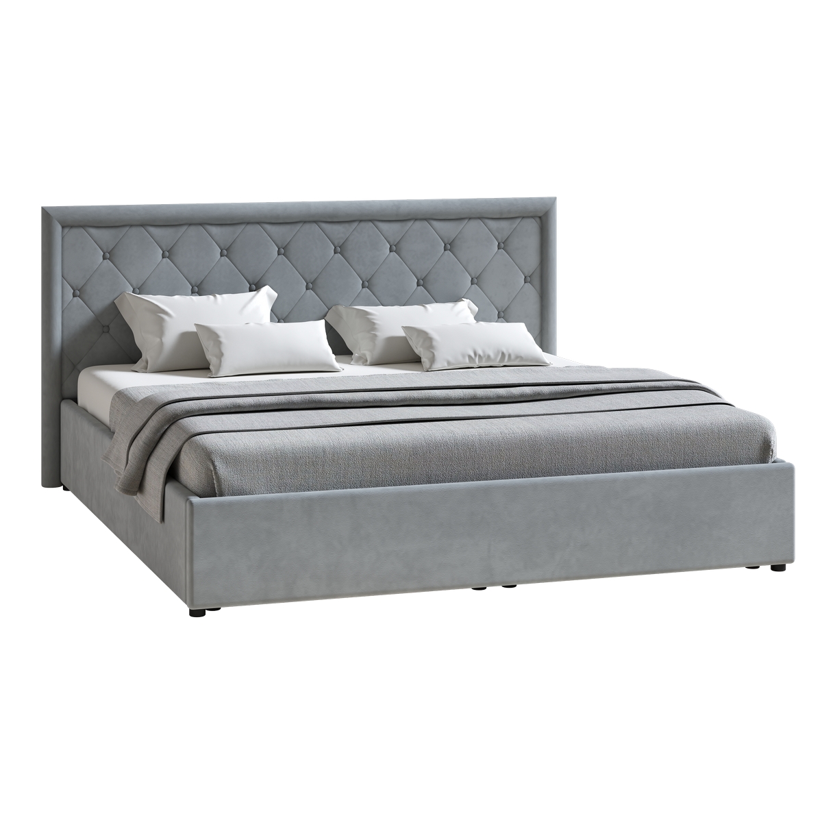 Кровать Марион 180 велюр OCEAN 023 серый с ортопедическим основанием и подъемным механизмом (спальное место 180 х 200)