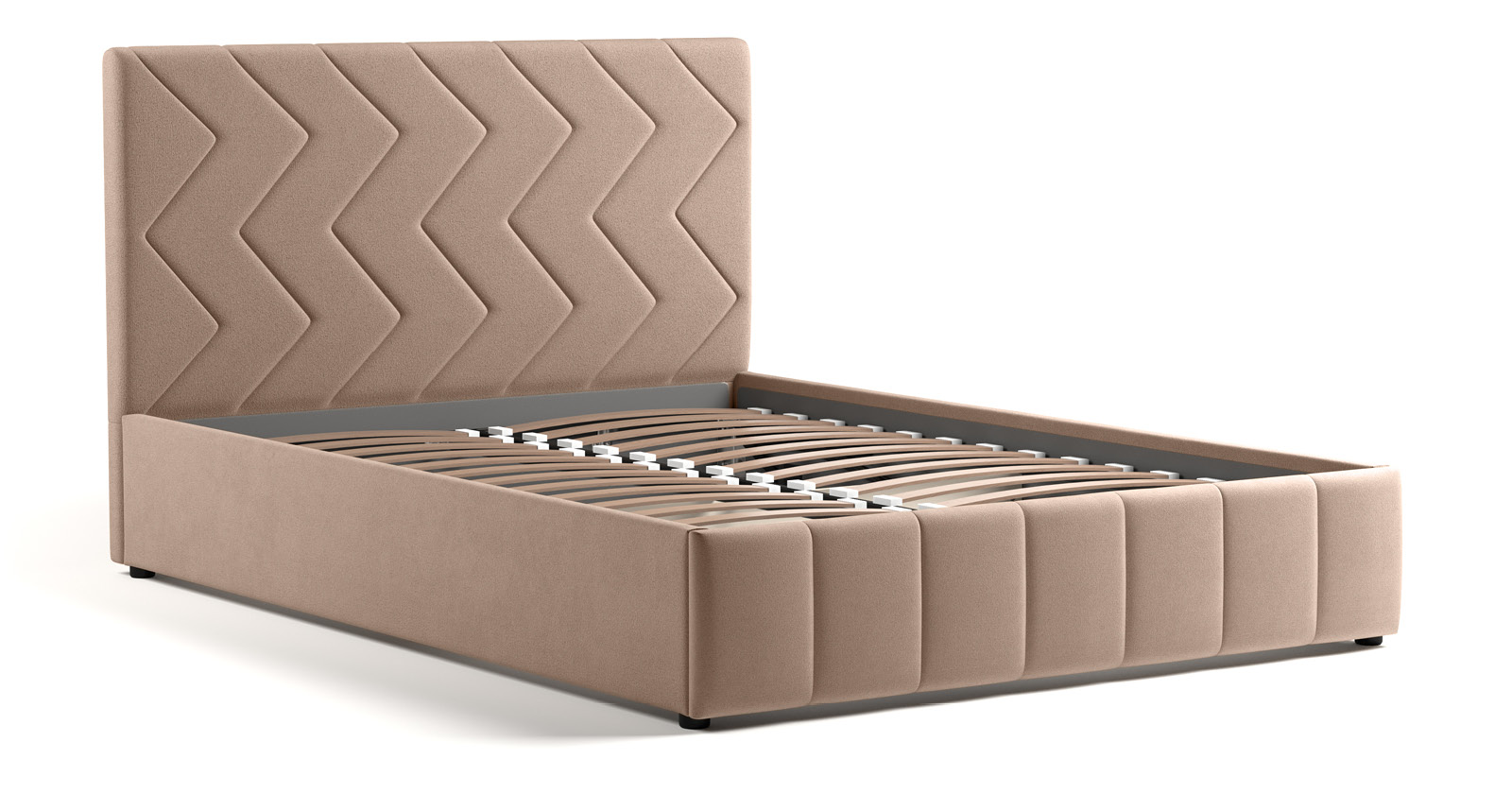 Кровать Милана 160 велюр бежевый кофейный с ортопедическим основанием и подъемным механизмом