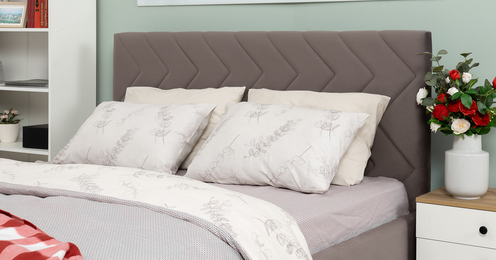 Основание кровати укомплектовано матрасодержателями. Жесткое кроватное дно из ЛДСП 16 мм. Задняя стенка изголовья выполнена в тех. ткани (спанбонд).