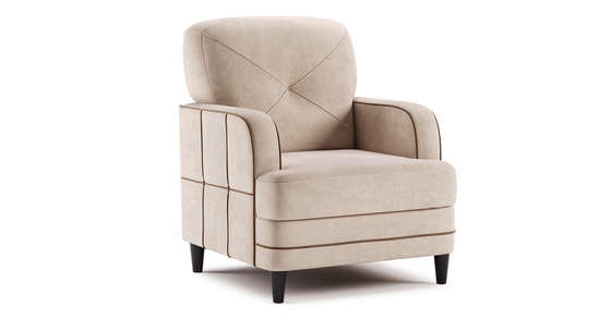 Высокая спинка с наклоном и мягкие подлокотники обеспечивают удобную посадку, дополнительный комфорт создает декоративная подушка. Царга кресла обтянута искусственной кожей в цвет опорам.