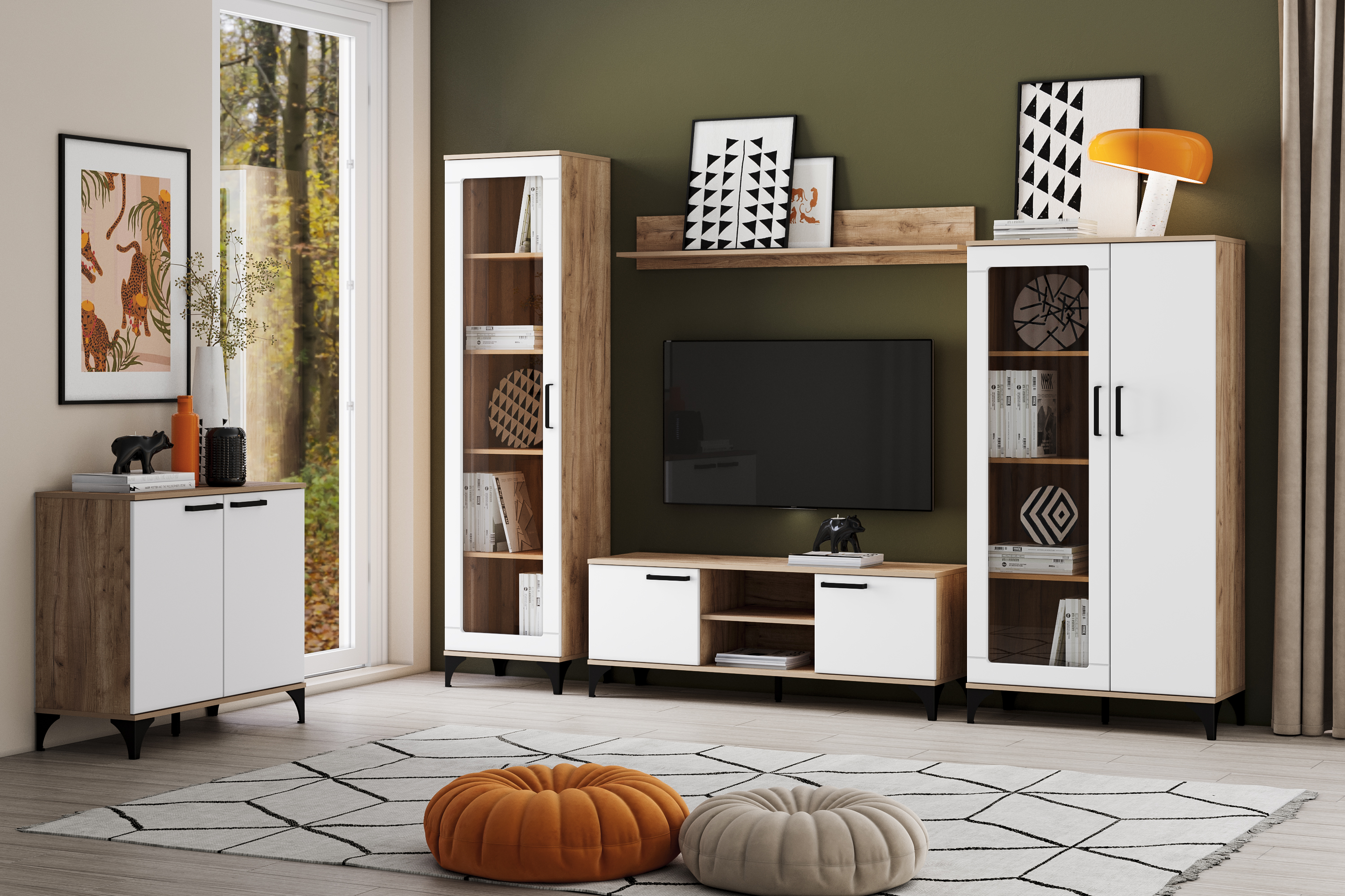 Полка навесная в гостиную Альба дуб золотой CRAFT, белый премиум