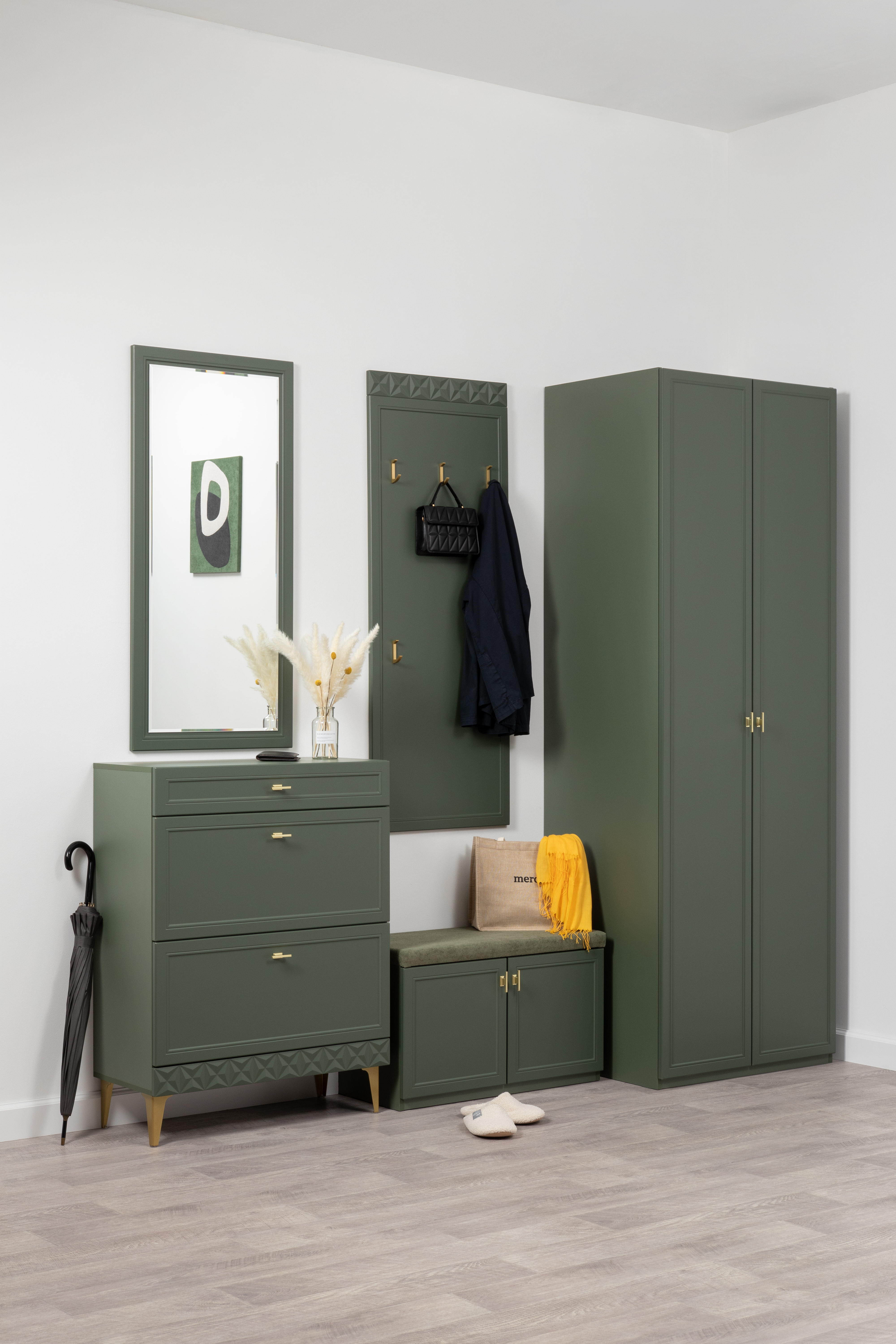Шкаф двустворчатый Марион 16.340.02 дымчатый зеленый K521, олива шагрень AG 1050 ПВХ