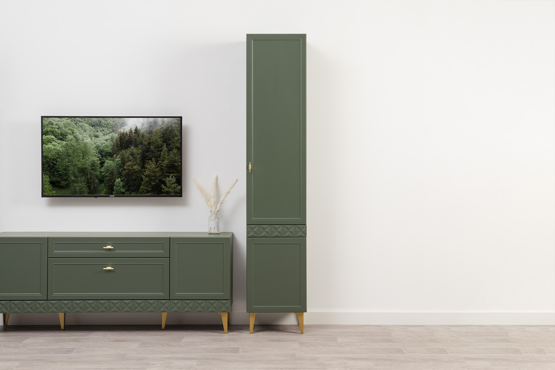 Шкаф-пенал Марион 16.333.01 дымчатый зеленый K521, олива шагрень AG 1050 ПВХ (собирается на любую сторону)